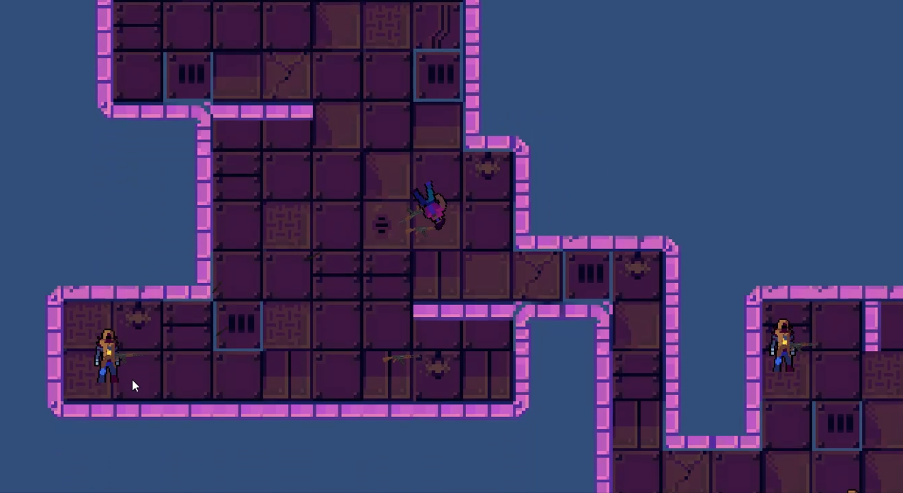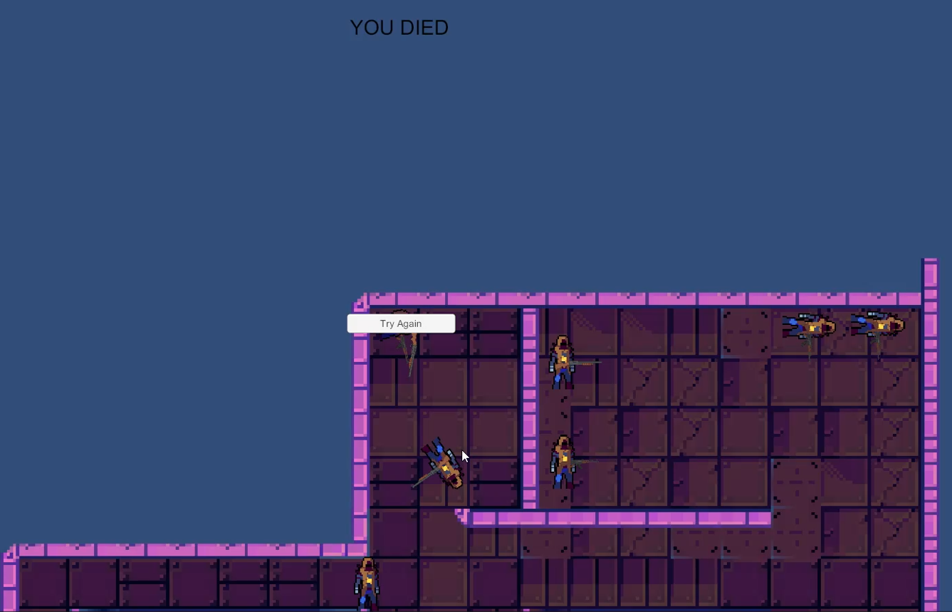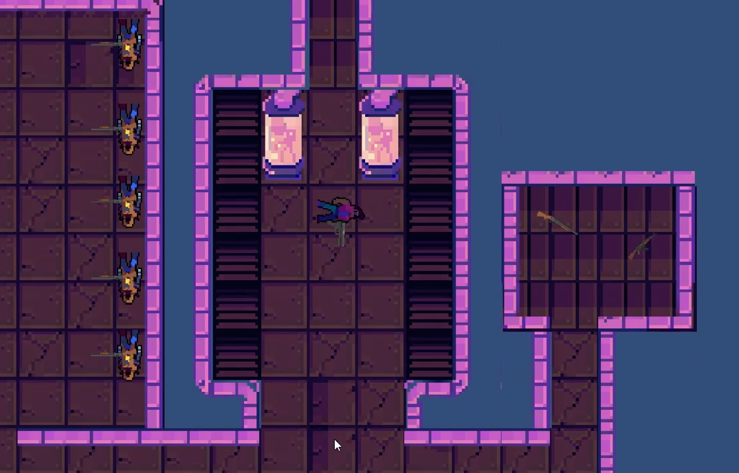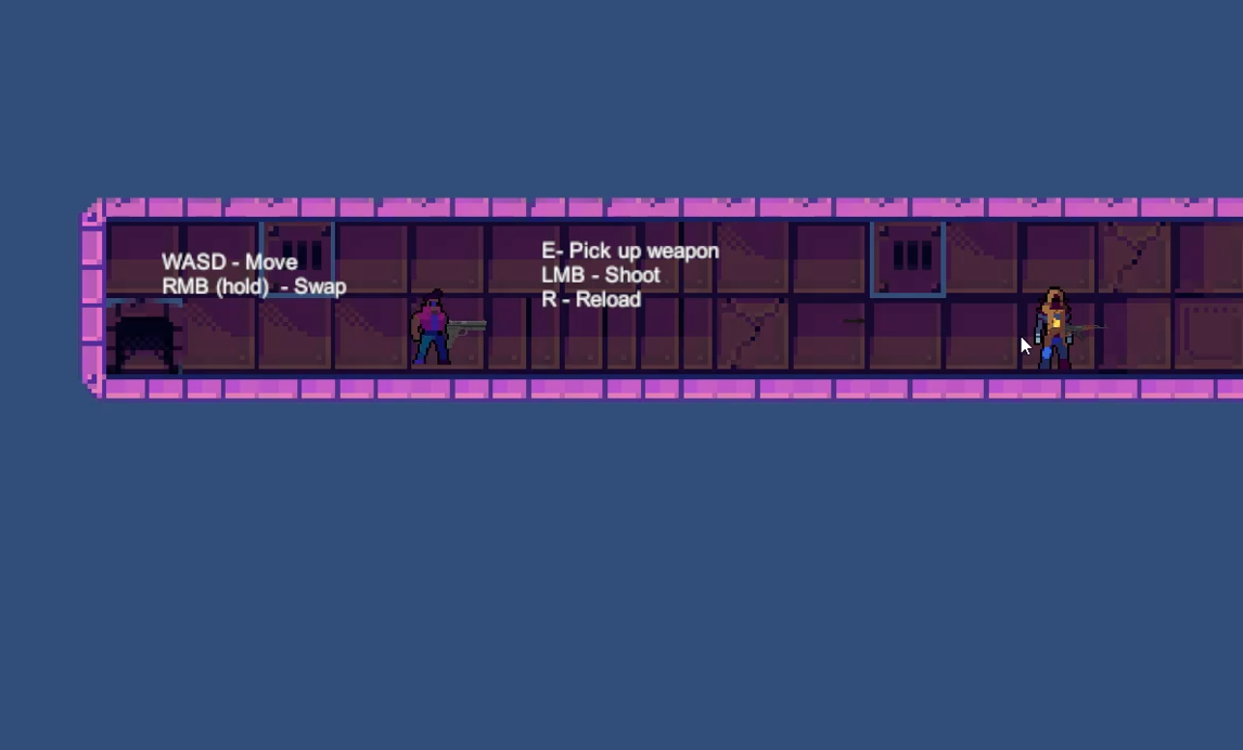 This is a Hotline Miami inspired game where you have to go through many rooms and kill the enemies in your way while swapping and using your enemies guns when your guns run out.